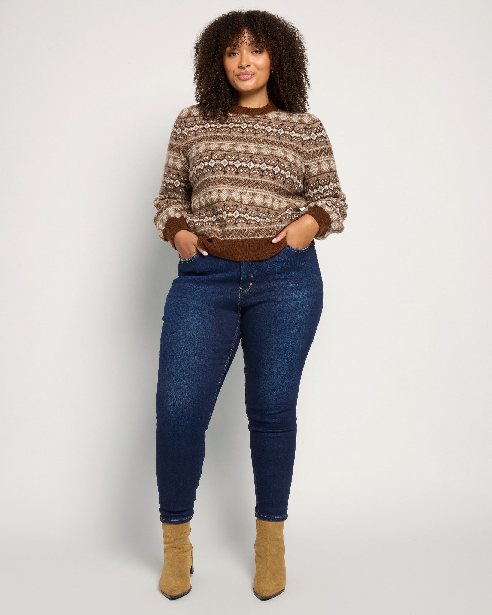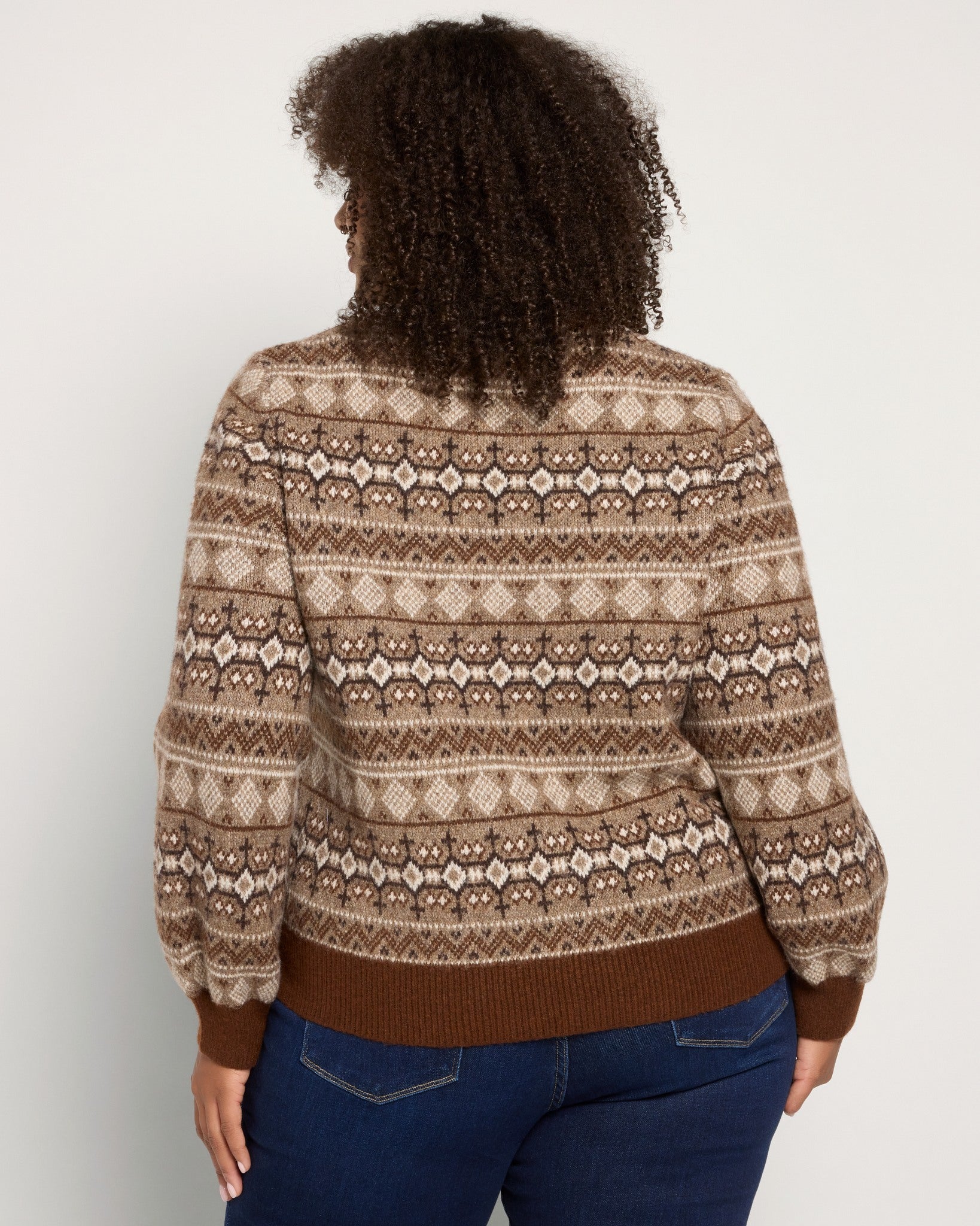 Plus Size Balloon Sleeve Fair Isle Sweater