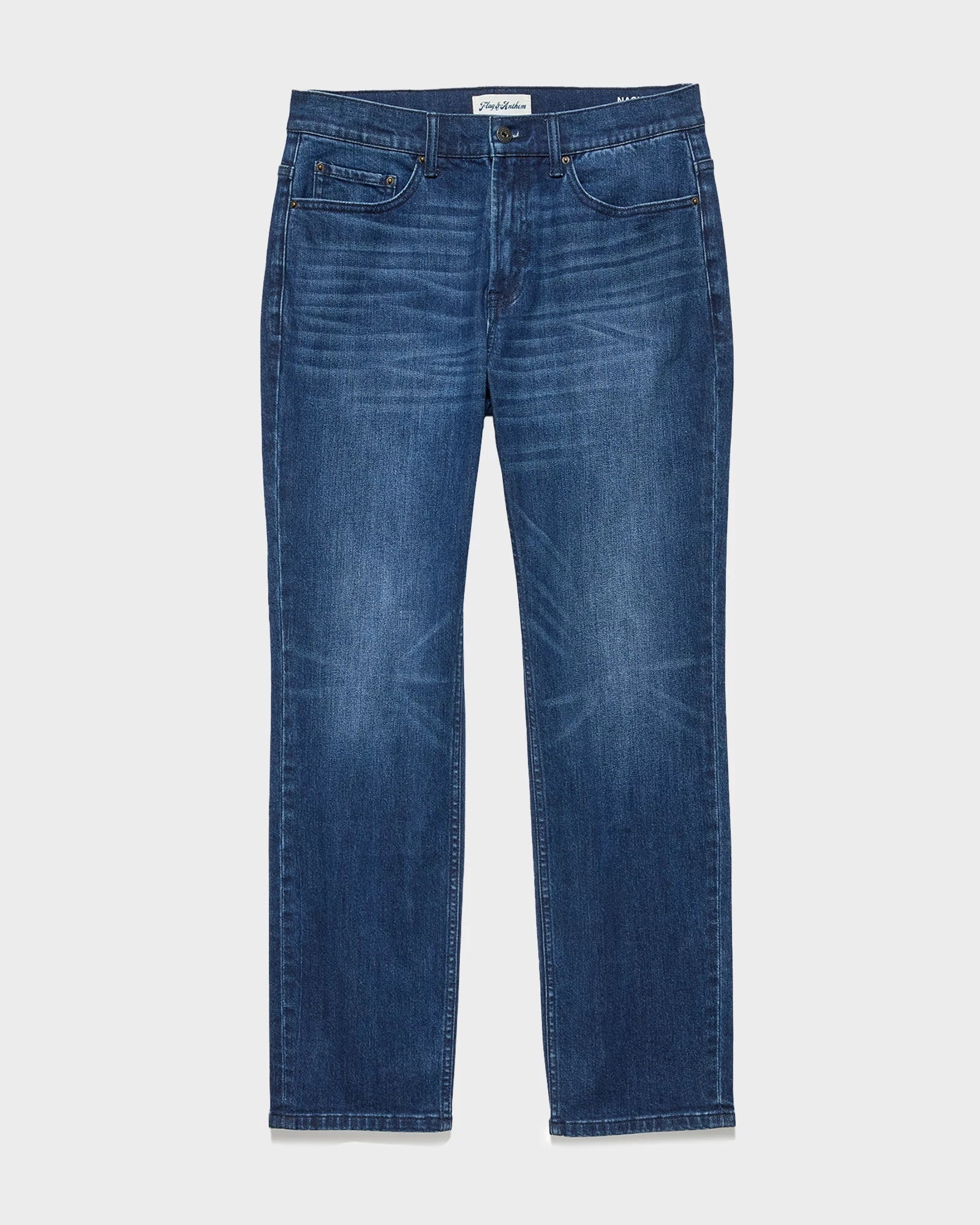 These straight-leg jeans takes you from work to play with ease. Classic straight fit with a mid-rise waist, five pockets and whiskering on the legs and knees. Made to last in a durable denim with a hint of comfy stretch.