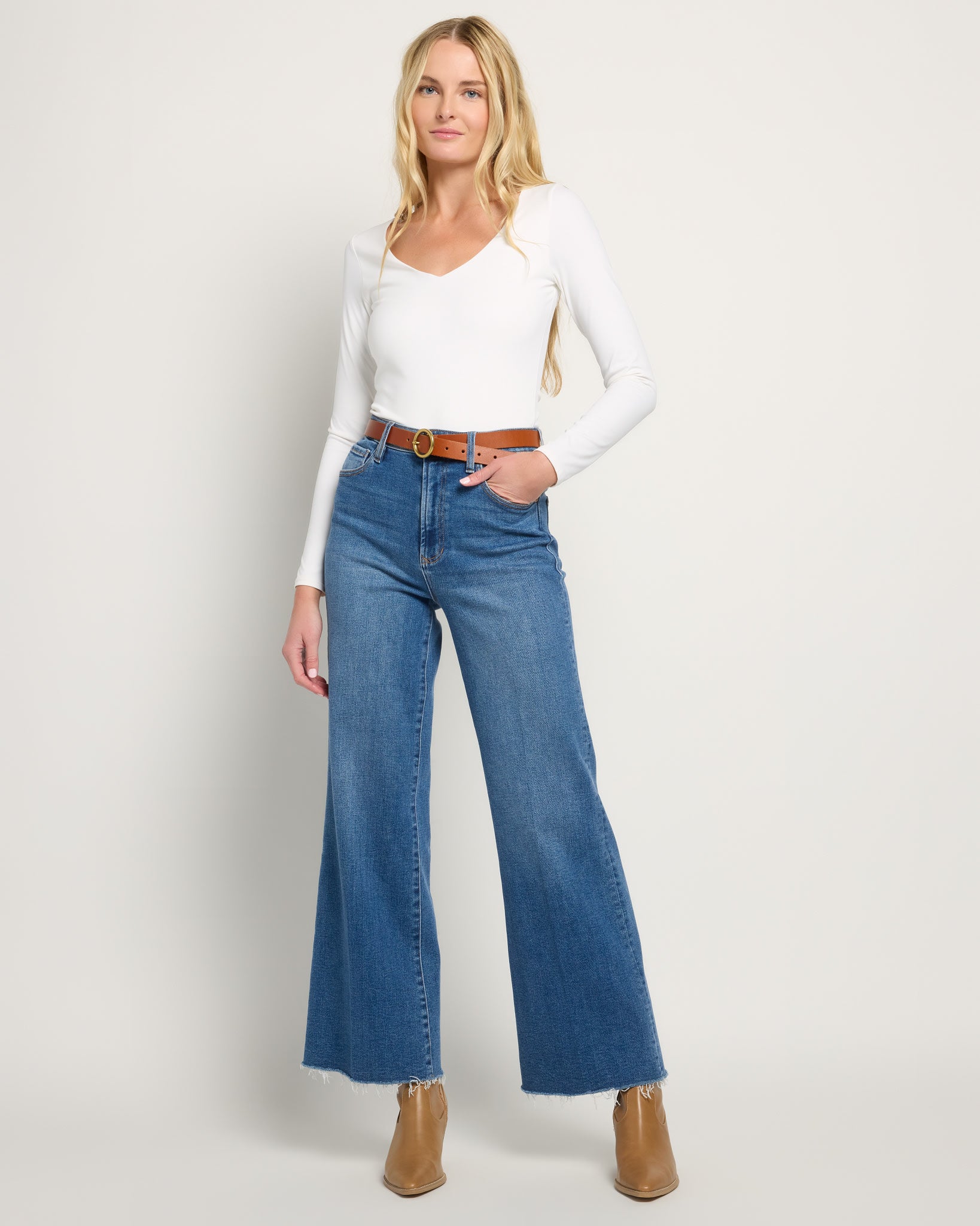Finish your look with this genuine leather belt! It features a 1-inch slim profile that fastens with a gold-tone ring buckle. Made of a 100% genuine leather in a classic tan color.