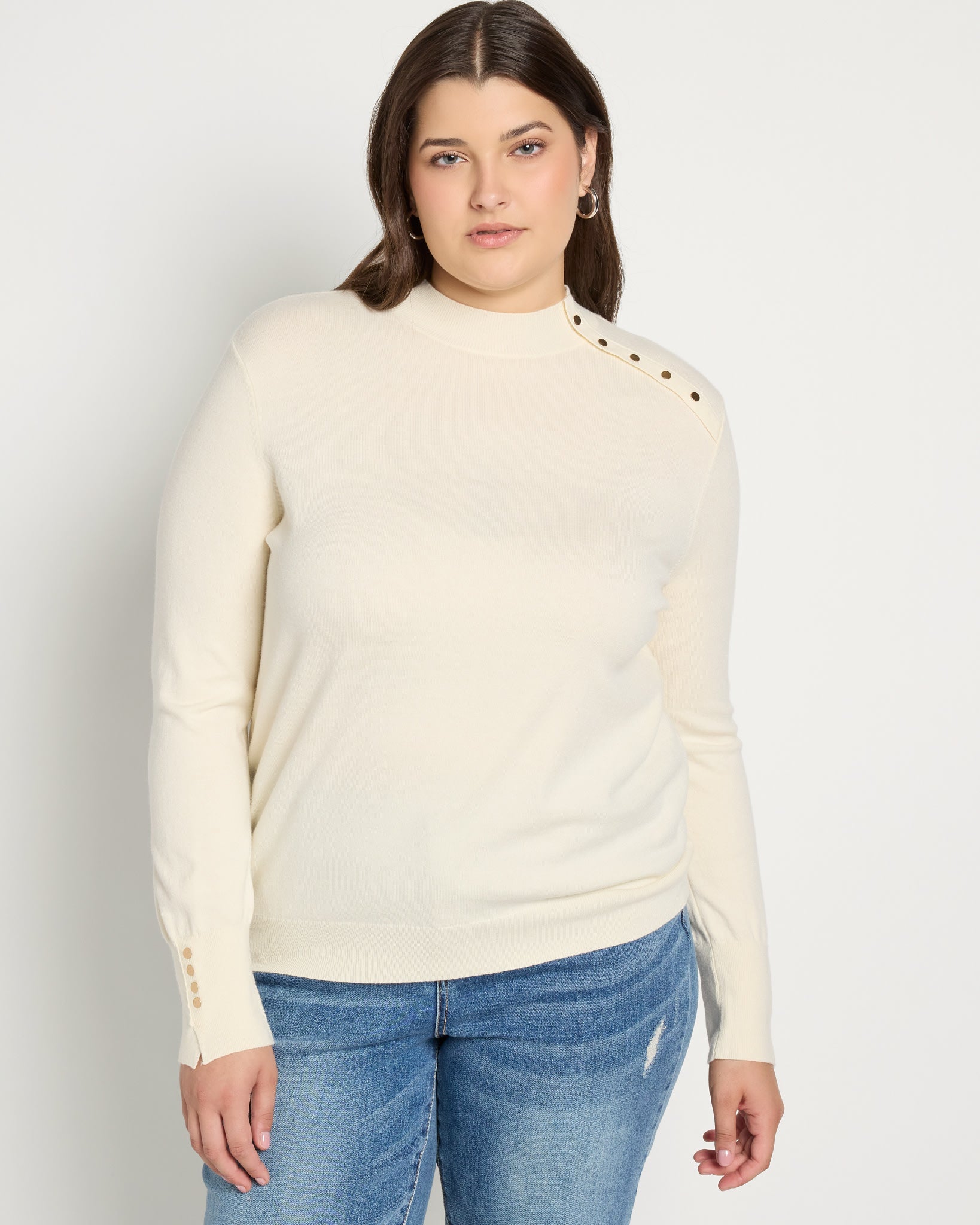 Plus Size Button Shoulder Turtleneck Sweater