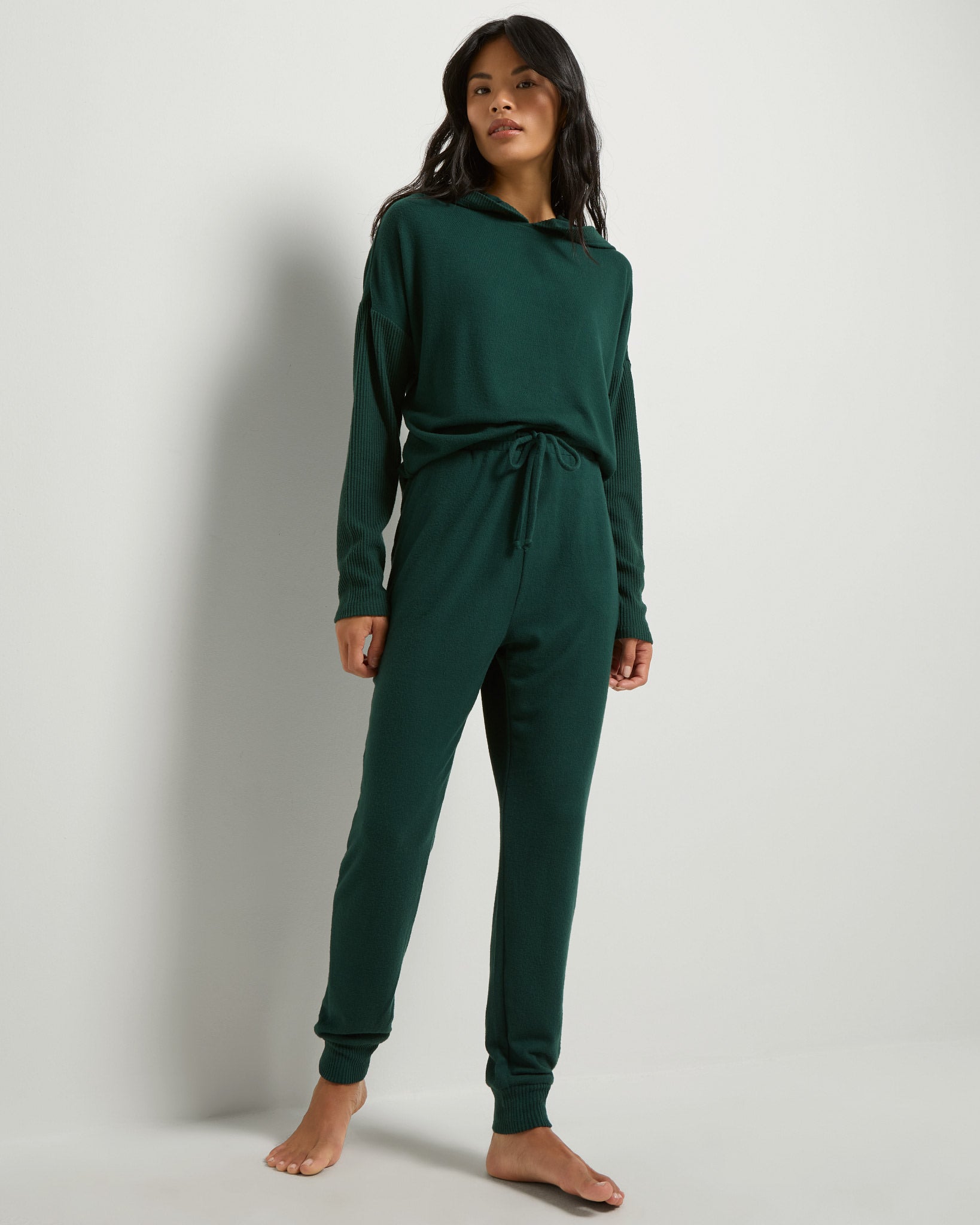 Embrace the laid-back charm with our Downtime Hooded Tee. This pullover silhouette is your go-to for effortless elegance, offering long sleeves and jersey knit fabric that wraps you in comfort. Perfect for lounging, its solid design makes it an everyday essential for any season.