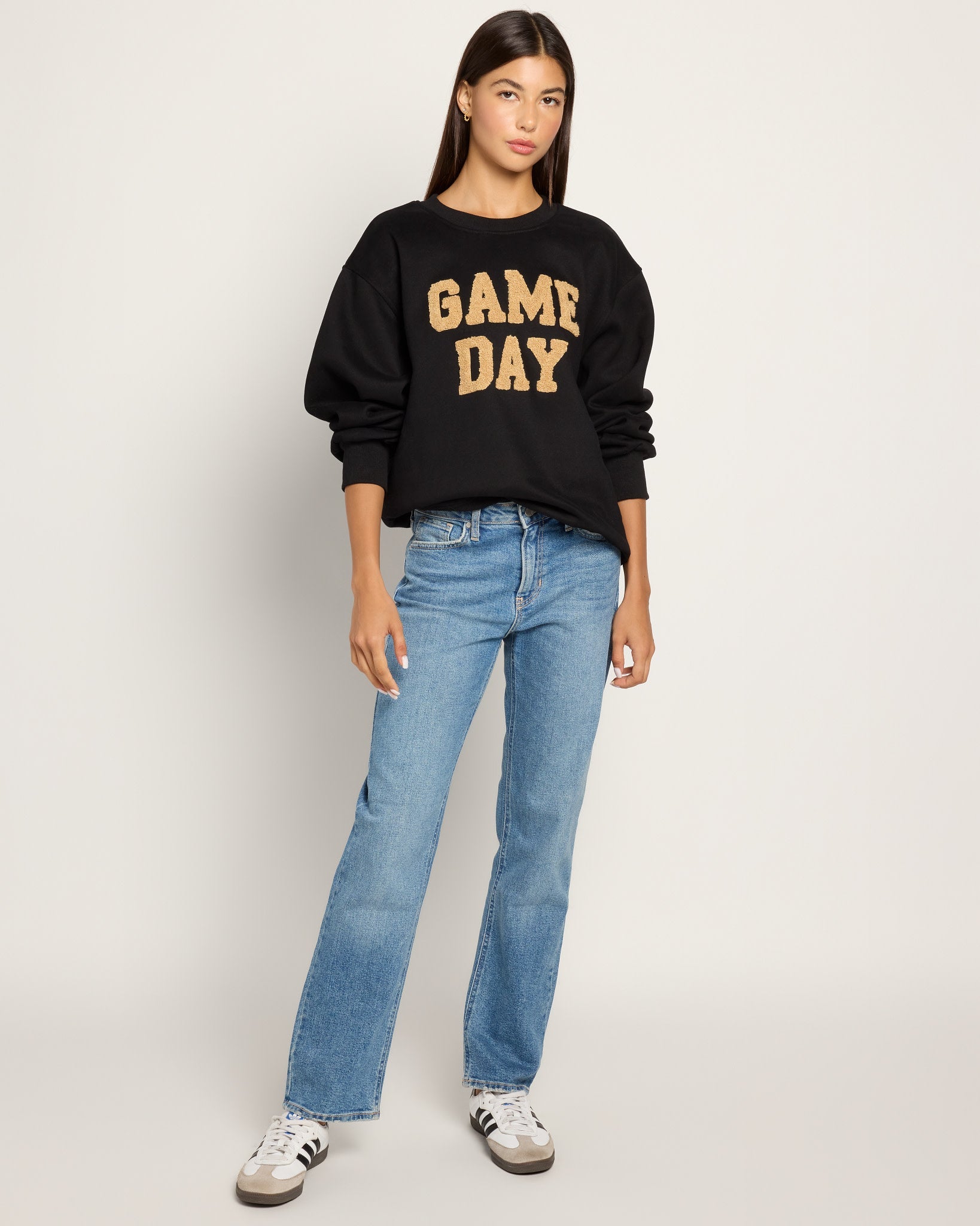 Sporty spirit, cozy feel. This classic pullover has a relaxed fit, ribbed cuffs, and crew neckline. Easy to cheer in, chill in, and wear on repeat—it always makes the lineup. Made of a cotton knit embroidered with a fuzzy "GAME DAY" patch on the chest.