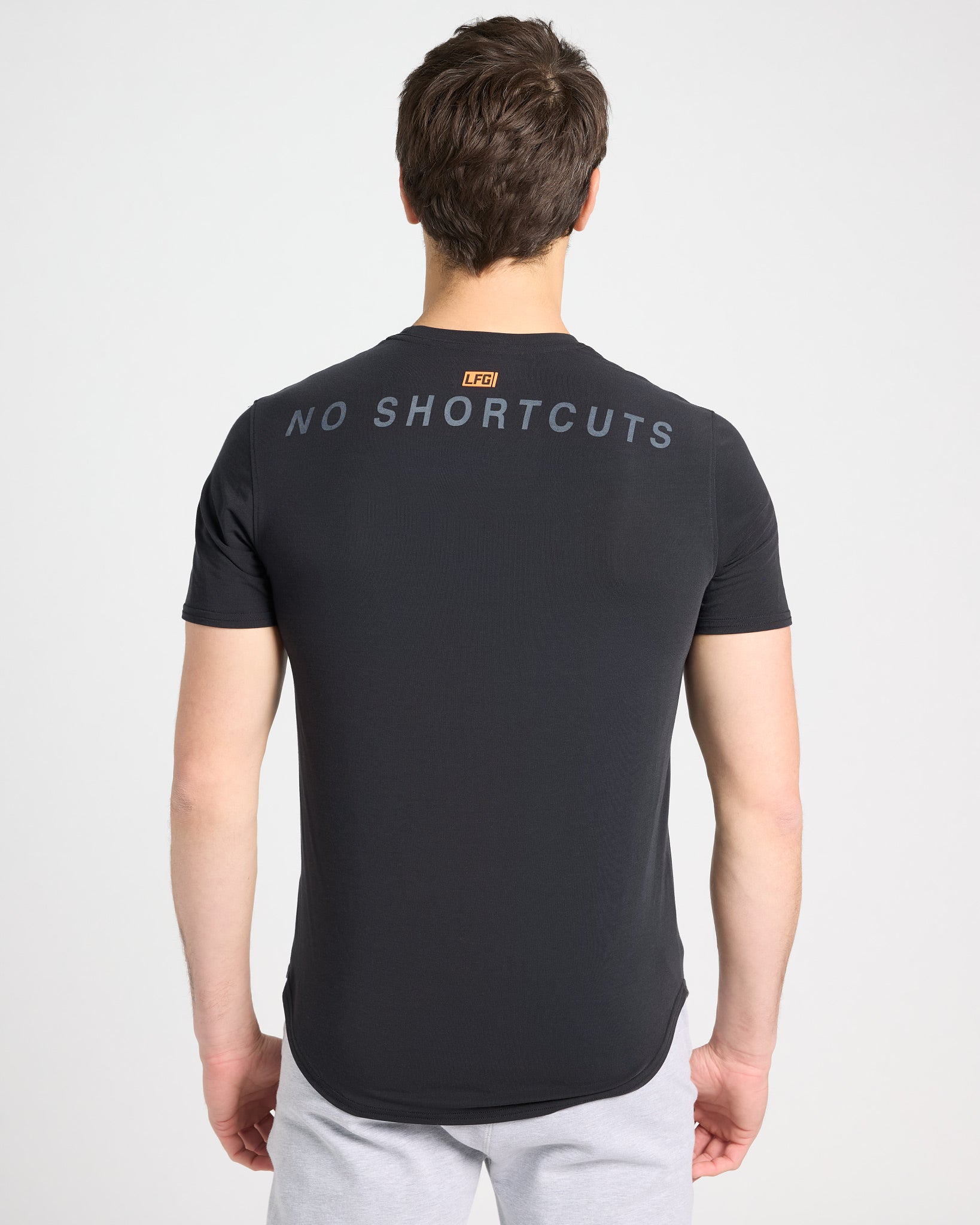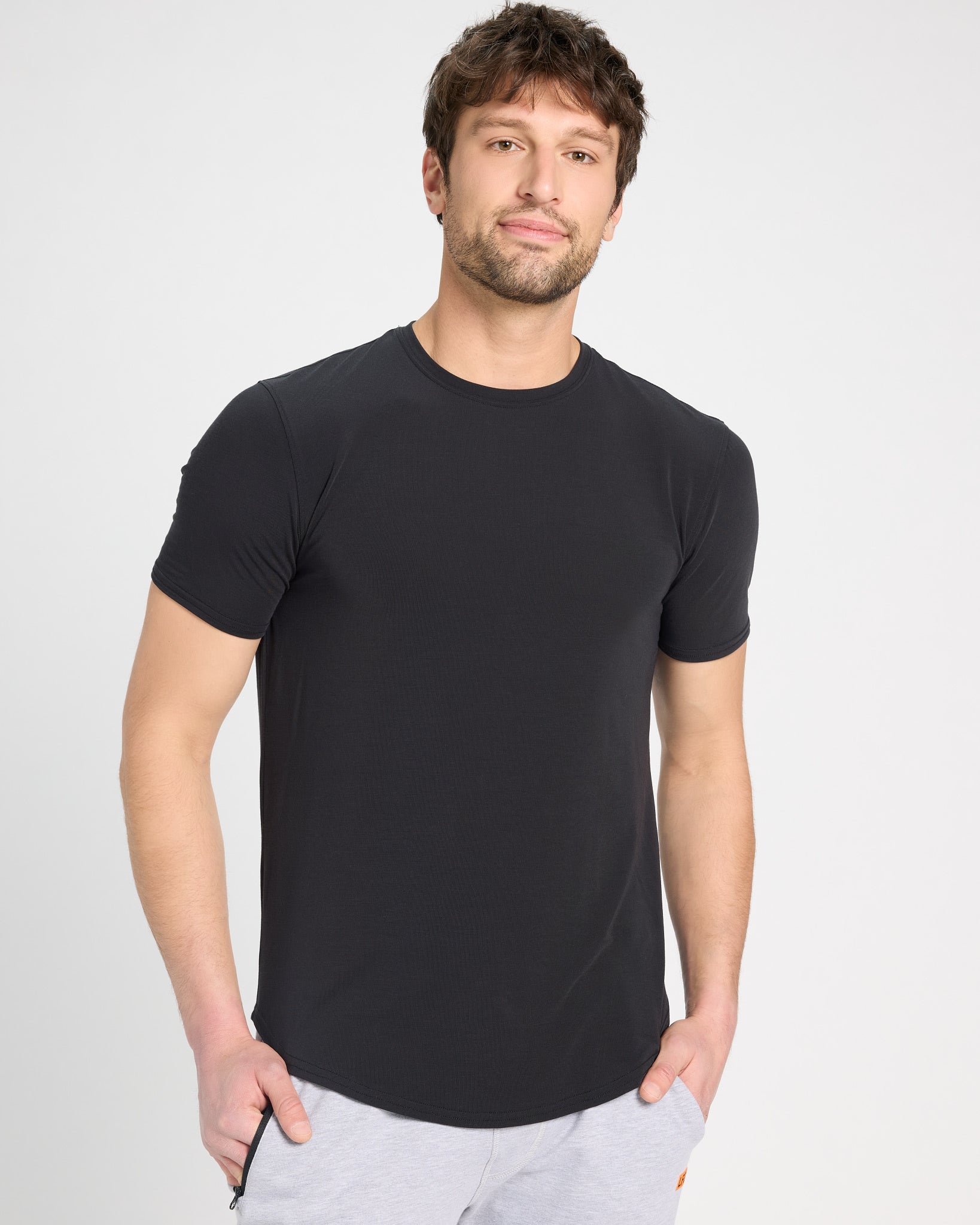 Built for the long haul, this wrinkle-free tee shirt has a regular fit with a classic round neck and curved hem. Made of sustainable tencel with a comfy blend of stretch to support you all day.