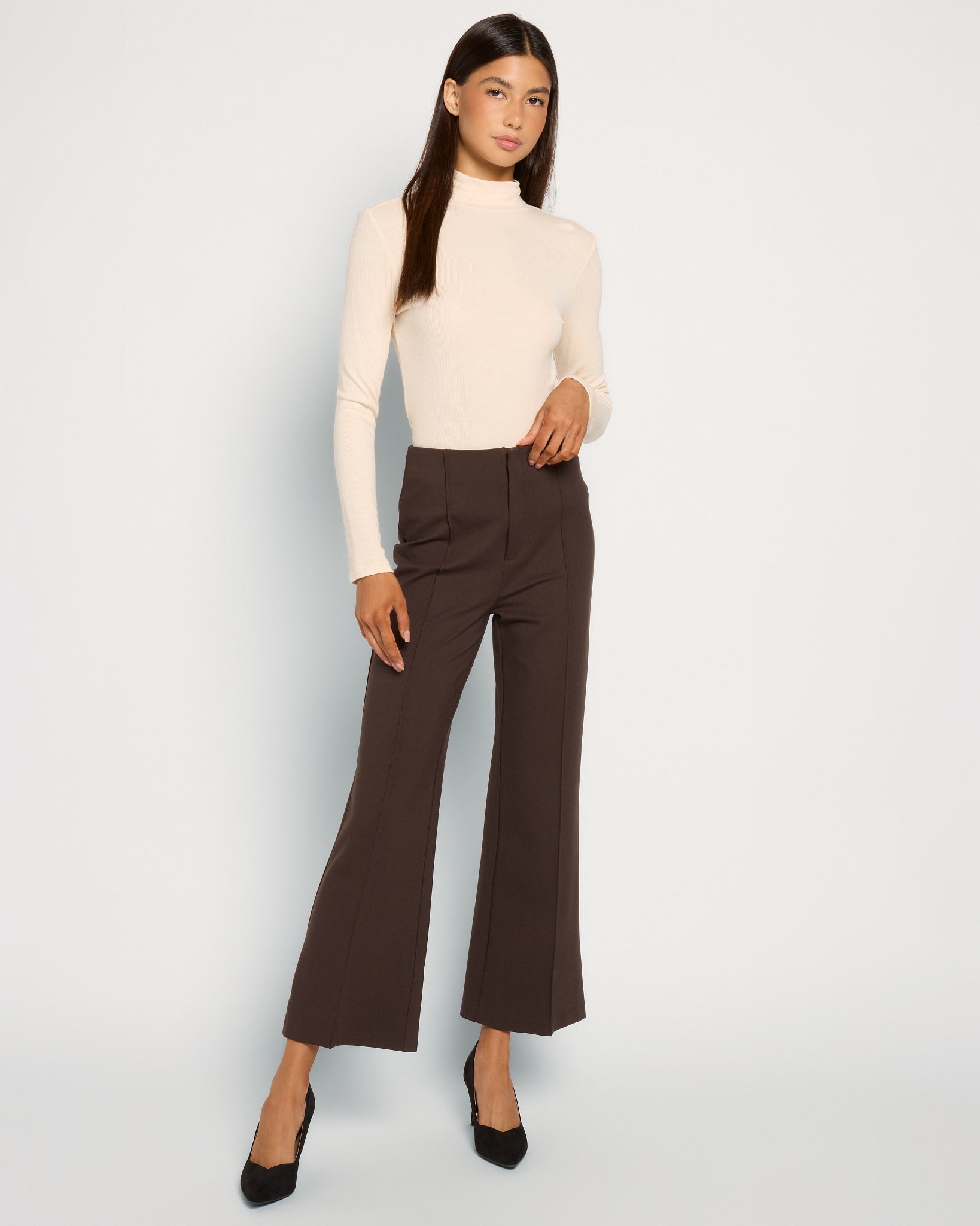 When the occasion calls for polished, these trouser pants are the answer! They're designed to resist wrinkles in a ponte knit and have a front seam for an elongating effect. High-rise waist with a roomy hem.