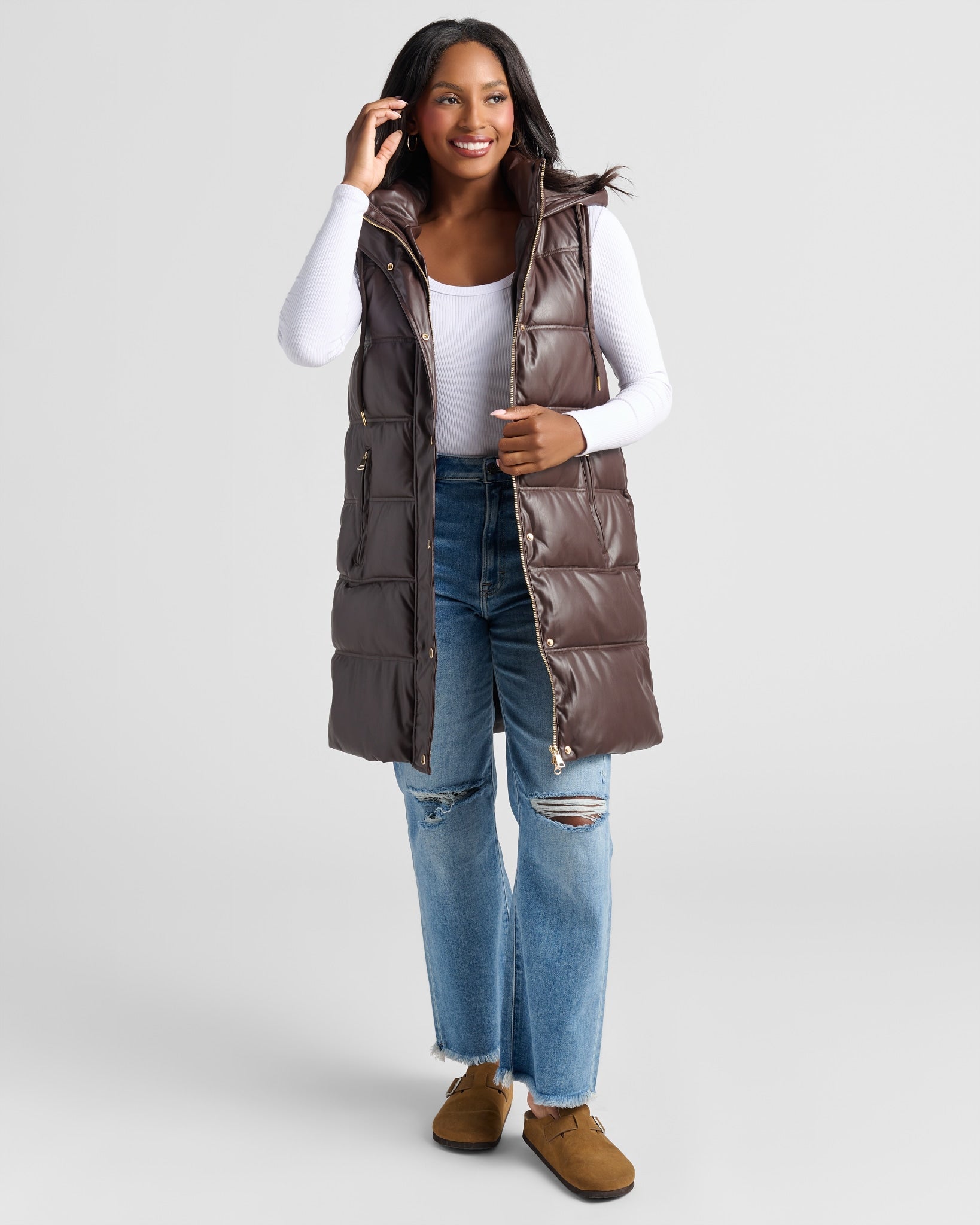 Extra style, extra comfort! This long puffer vest has an oversized fit that is so on-trend. Two side pockets to keep your hands warm and fully lined.