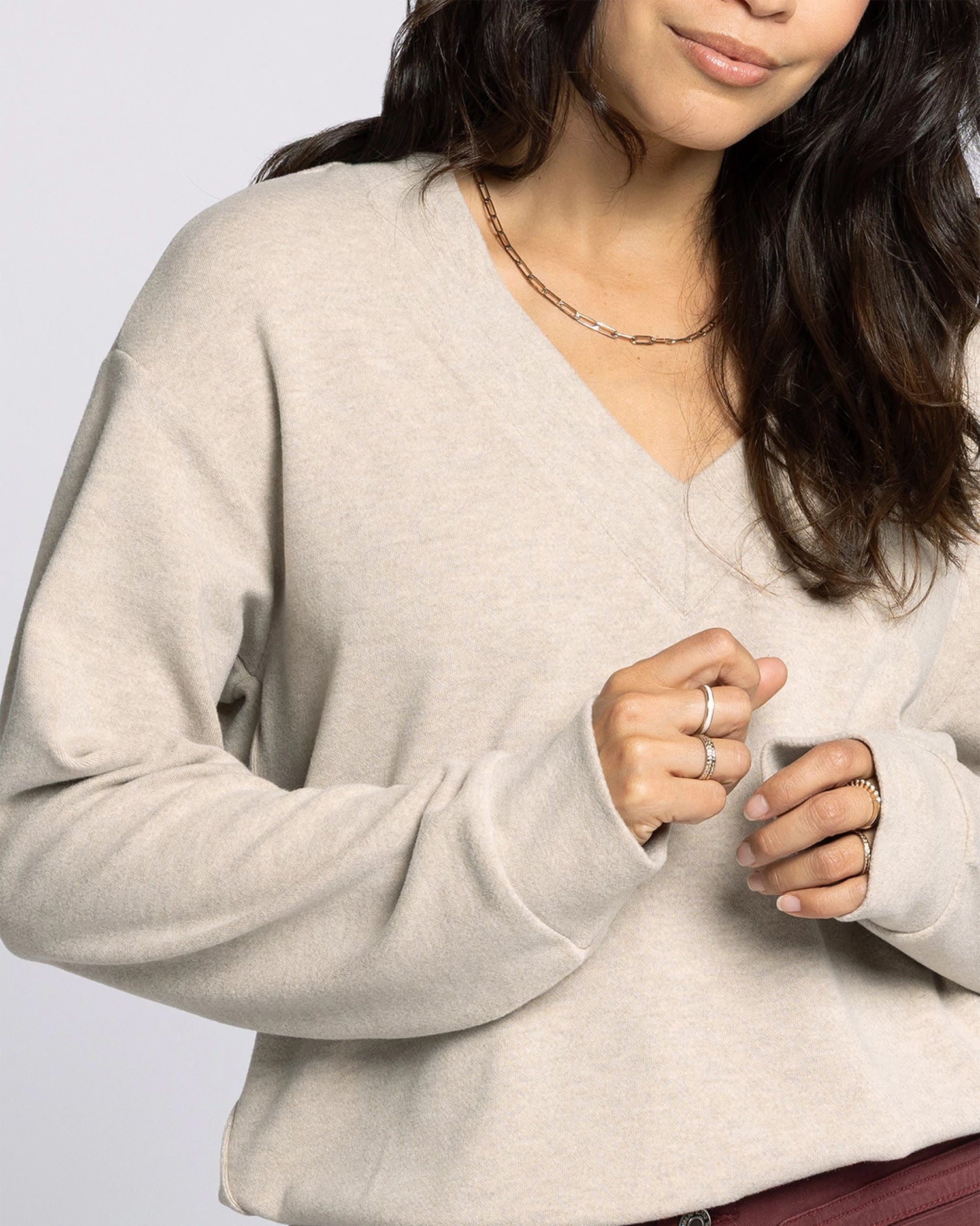 Sometimes, all you need is an oversized sweater! This one is elevated with a v-neckline so you can style it with your favorite necklace layers. Made of a comfy viscose blend with just enough stretch.