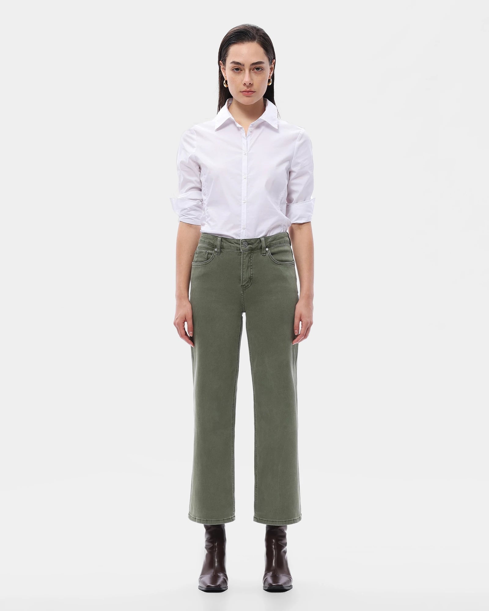 The perfect ankle-length jeans for work and play! So versatile in a straight-leg silhouette with a comfy mid-waist, five pockets and zip fly with button closure. Made of so-soft and stretchy denim.
