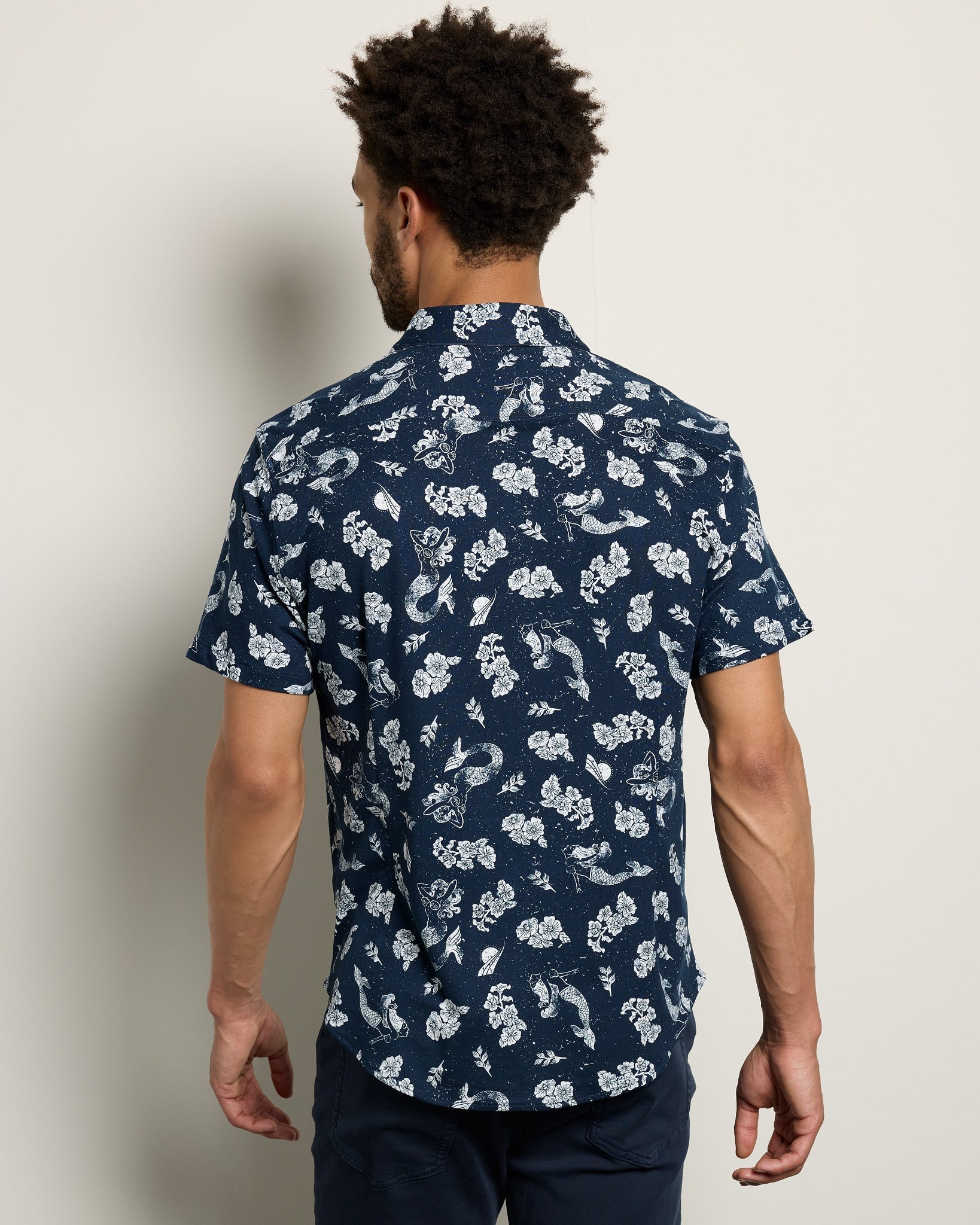 You'll feel like you're on vacay every day with this printed shirt! Relaxed fit with short sleeves and a button-up front that's easy to layer over a tank. Made in the USA of a silky-soft and lightweight knit.