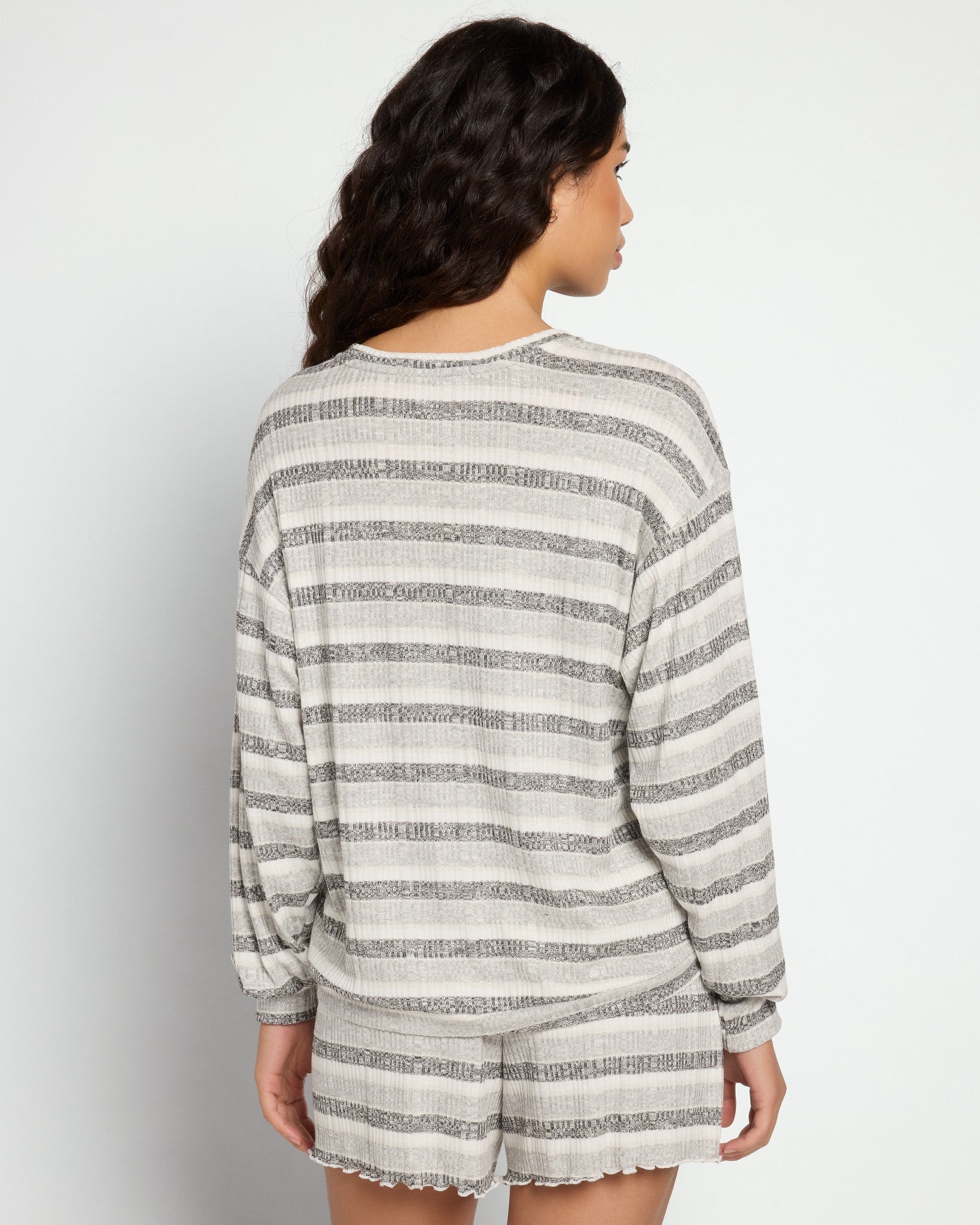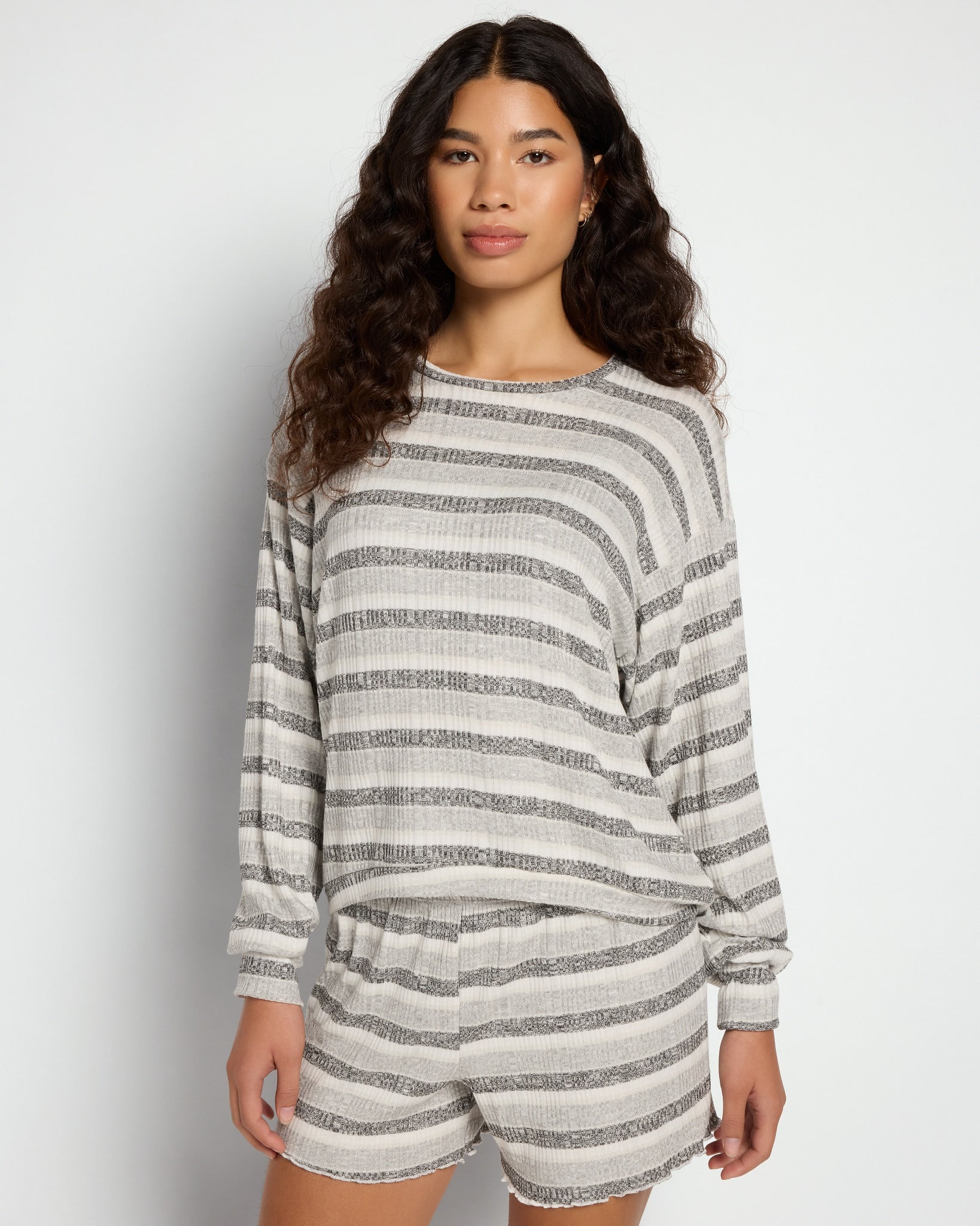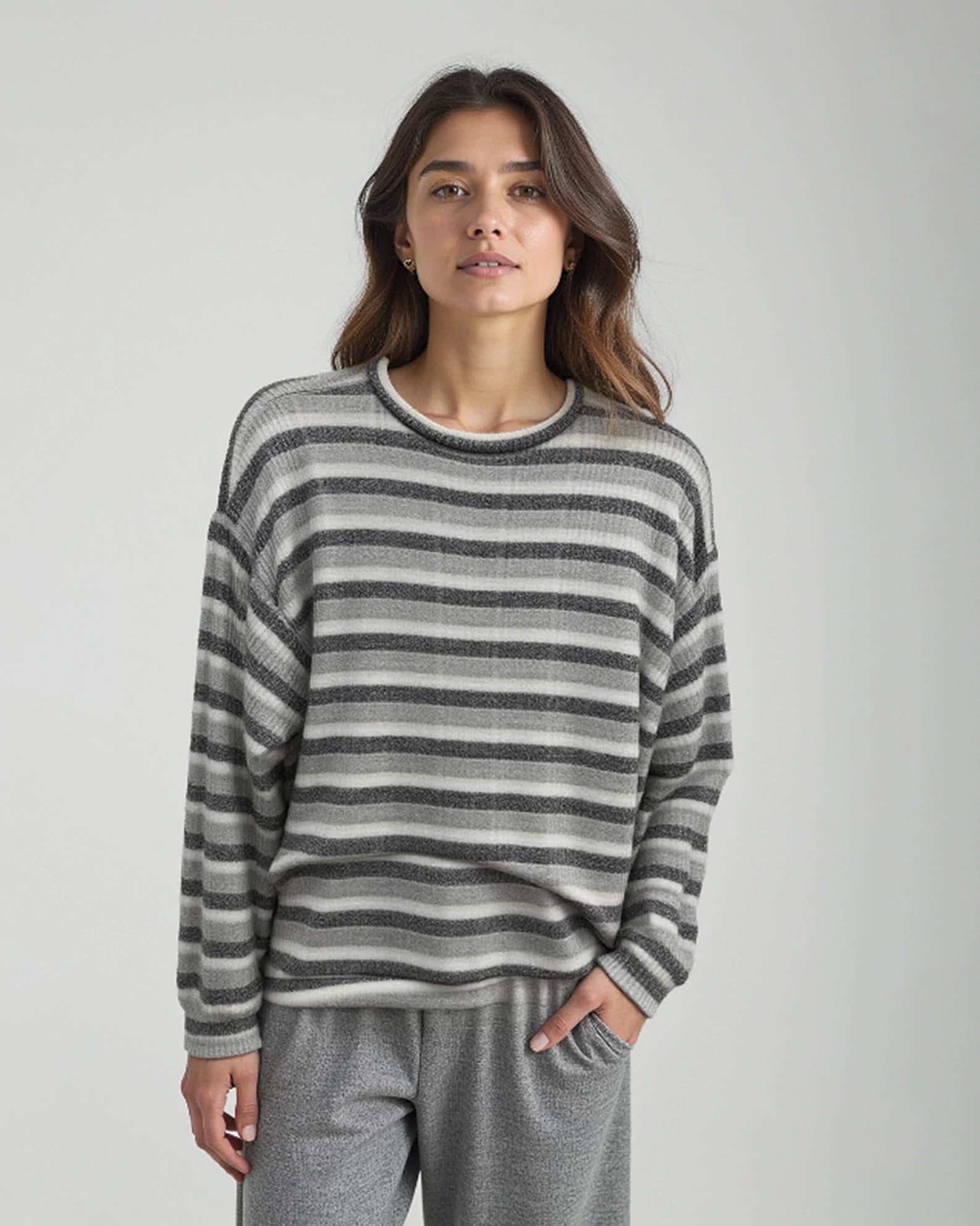 This cozy striped shirt feels like those comfy tees you've had forever! Easy to snuggle in with a round neck, slouchy, relaxed fit and dropped shoulders. Made of a soft rayon knit that's breathable and cool on the skin.