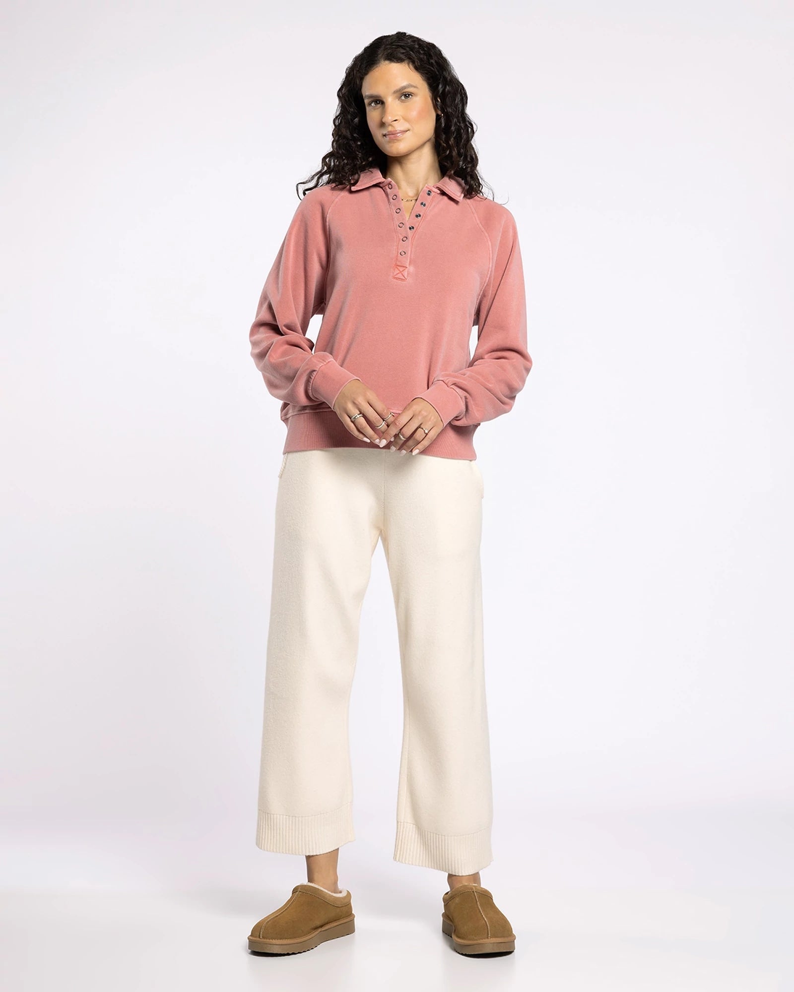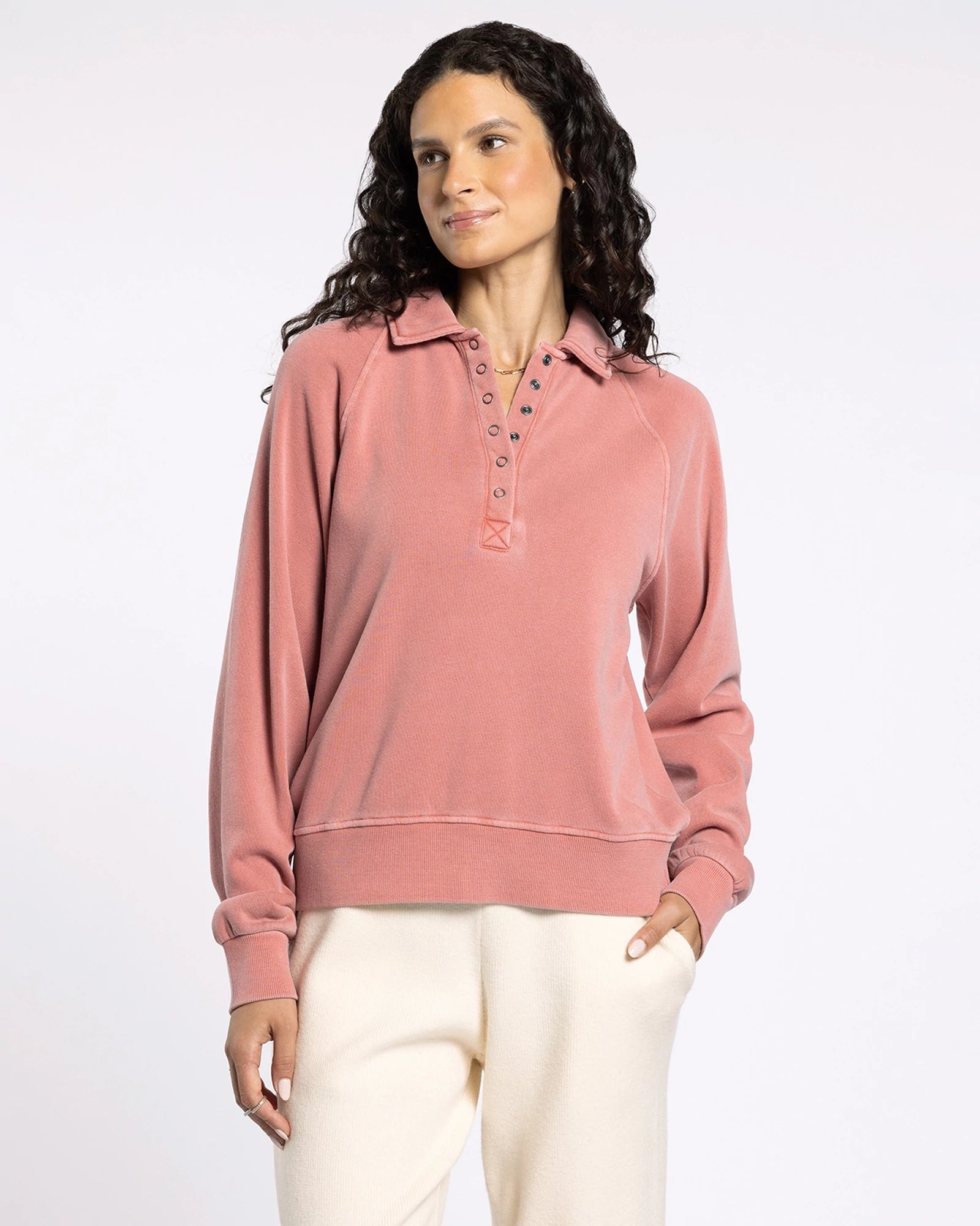 This pullover sweatshirt is as comfy as it is versatile! Regular fit with raglan sleeves, a button-up collar and a cozy lived-in feel. Made from a lightweight and breathable cotton blend.