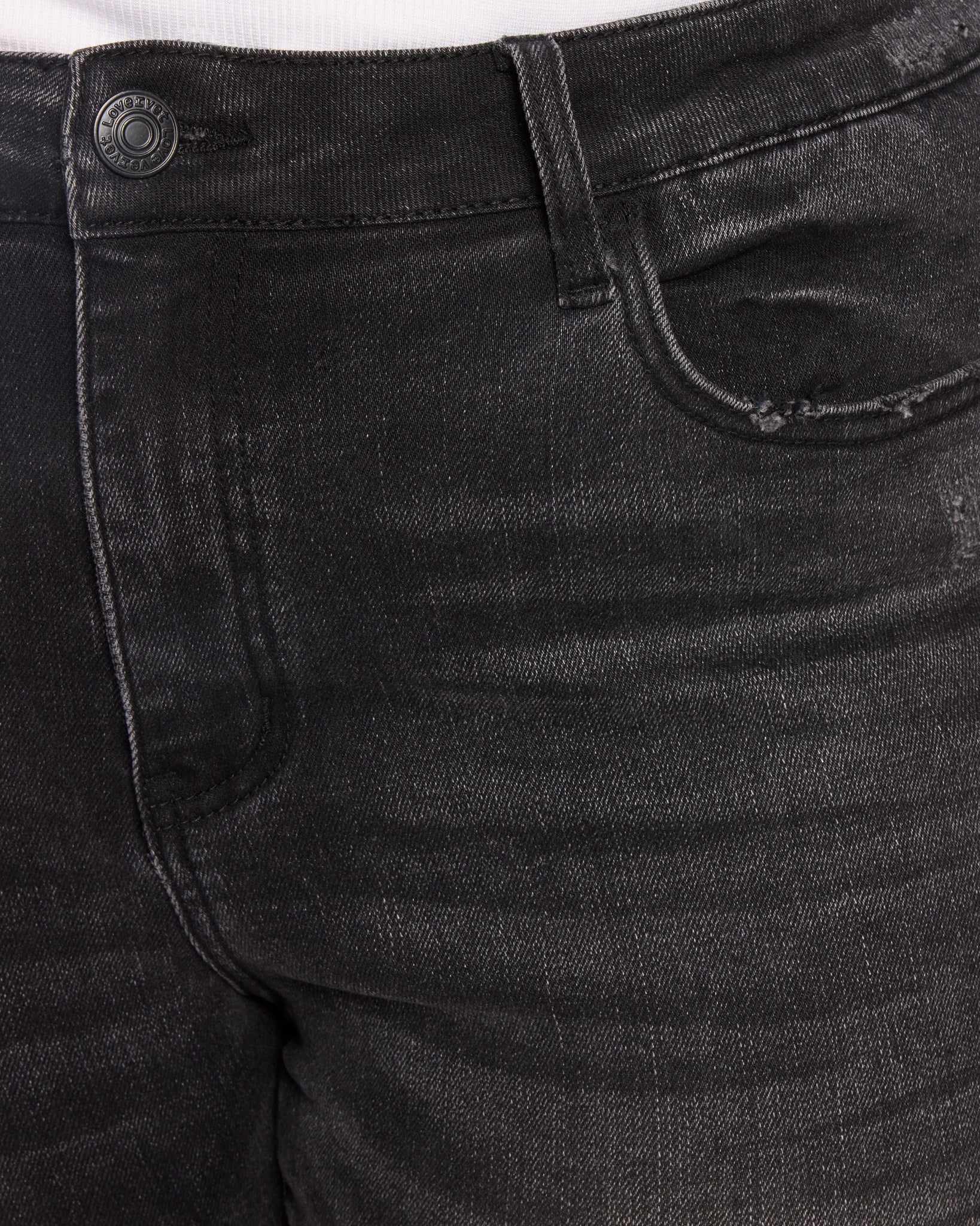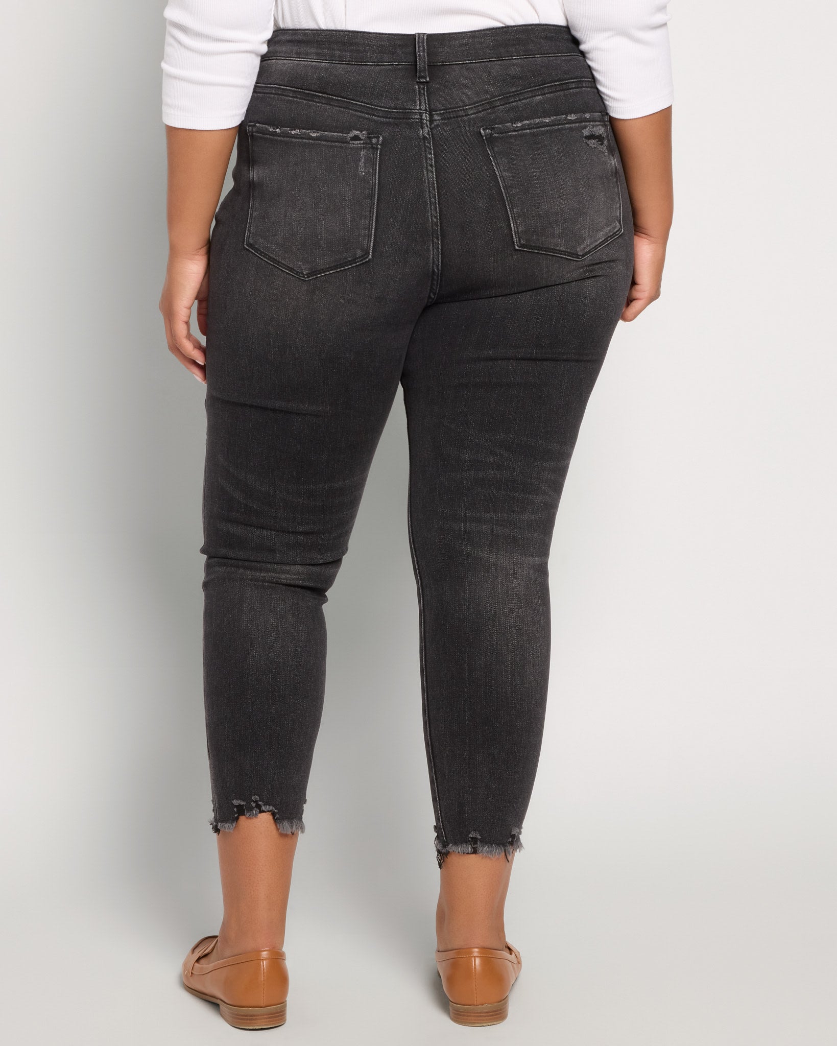 These raw-hem jeans are the edgy pair your wardrobe needs! Skinny fit with a comfy mid-rise waist and distressed details. Made of so-soft denim with just enough stretch.