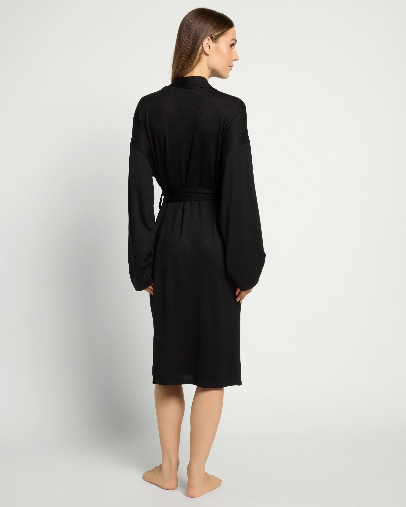 Luxe comfort, made simple. Just like a timeless LBD, this robe is perfect for cozy evenings. Designed with a relaxed drape, tie waist and soft, lightweight feel.