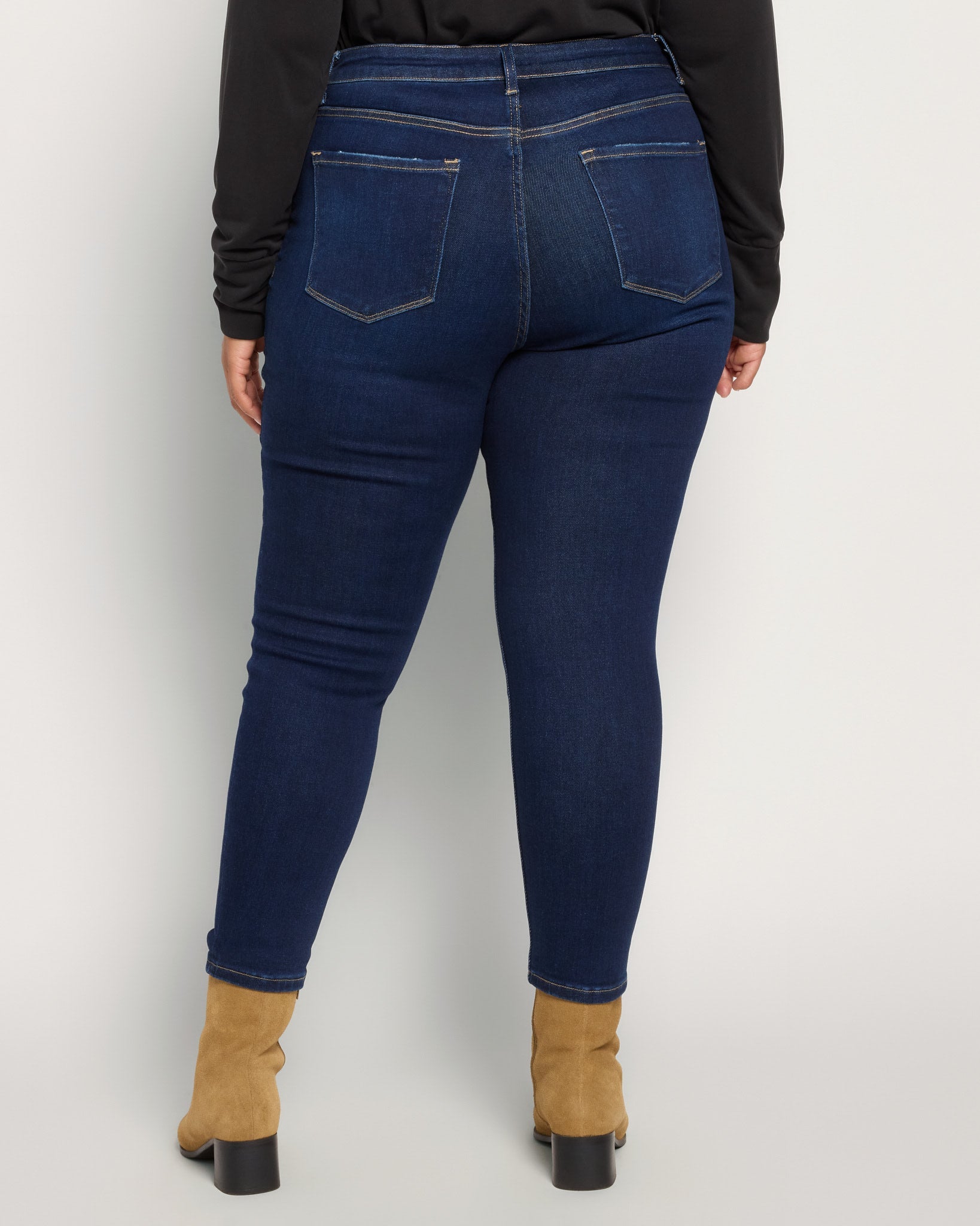 Whatever the season, skinny jeans are a sleek option! This one has a smoothing fit with a mid-rise waist and flattering back yoke. Ultra-comfy in a high-stretch denim.