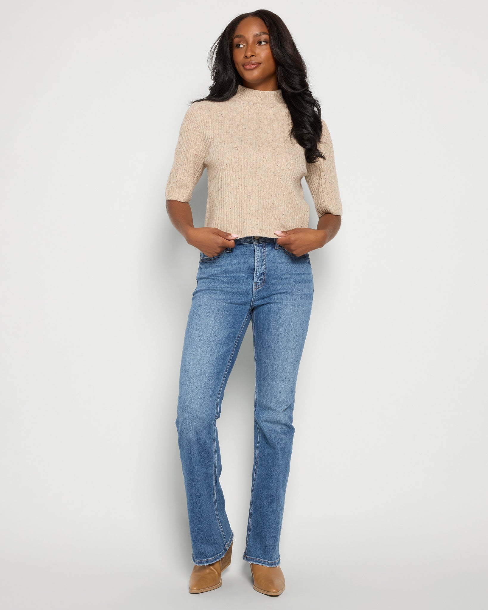 This wool-blend sweater has an elevated, versatile look that will be on your constant rotation! Boxy shape with a mock neck and elbow-length sleeves. So warm in a ribbed wool knit.