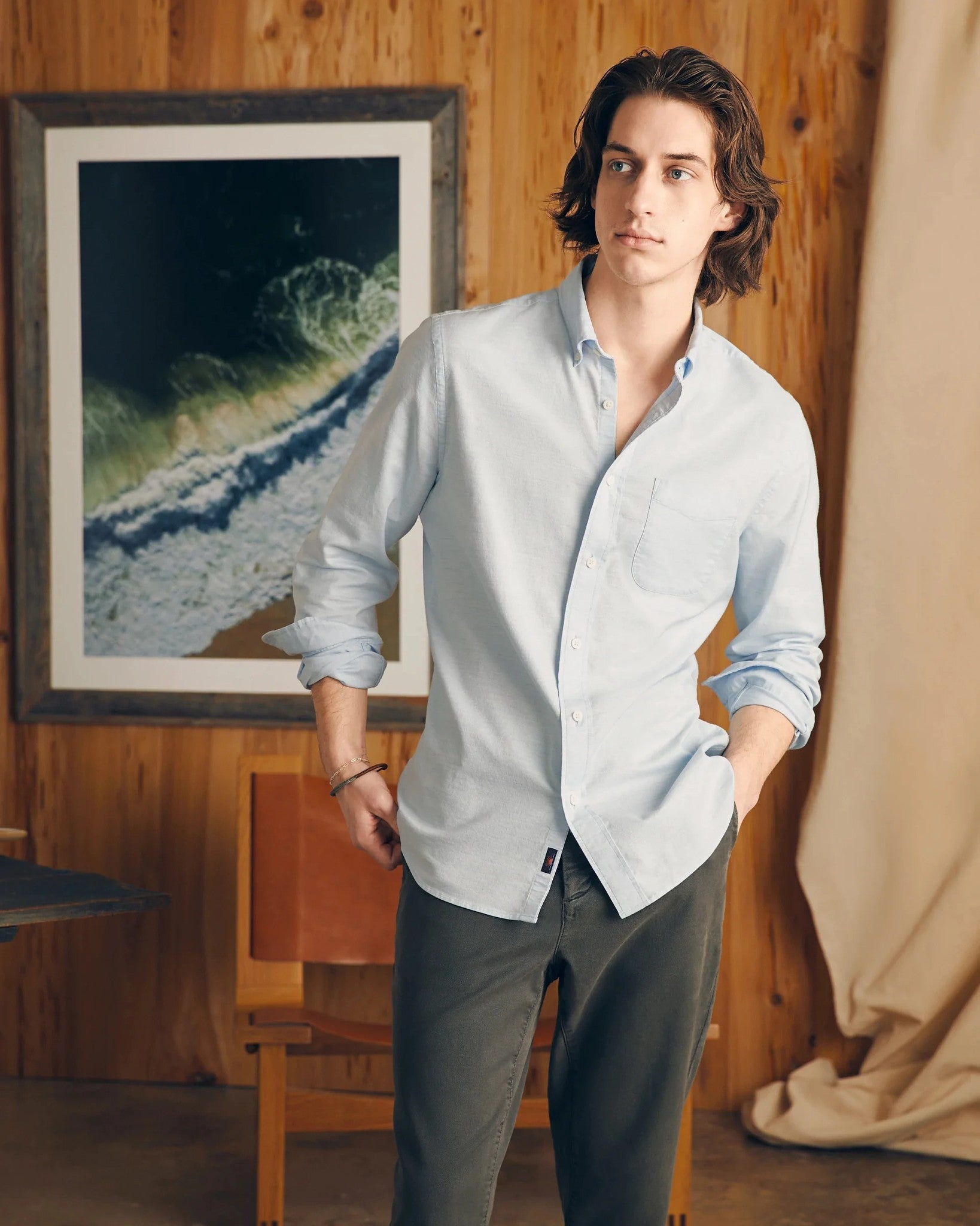 This long-sleeve button-up shirt has a soft, breathable feel! Regular fit with a button-up front, breast pocket and a rounded hem. Made from a lightweight yet sturdy cotton blend.