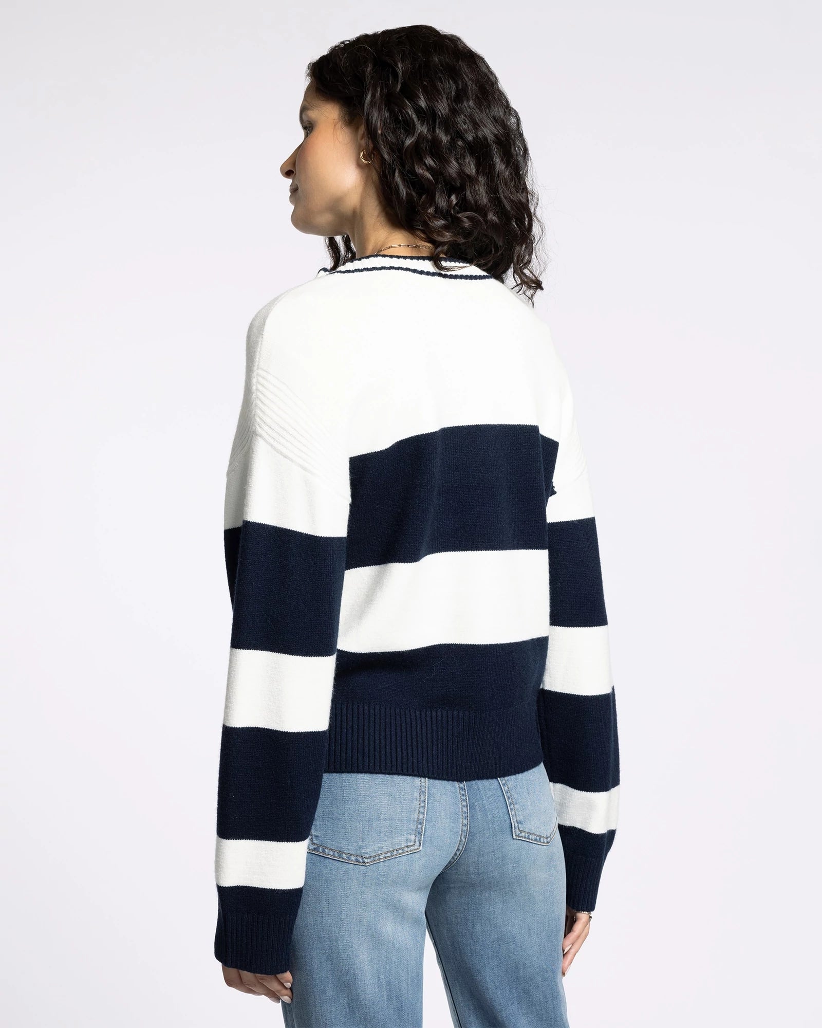You'll reach for this striped sweater all year long! It has an outlined crew neckline and wide stripes for a modern, nautical feel. The relaxed fit will go easily with your everyday wardrobe staples.