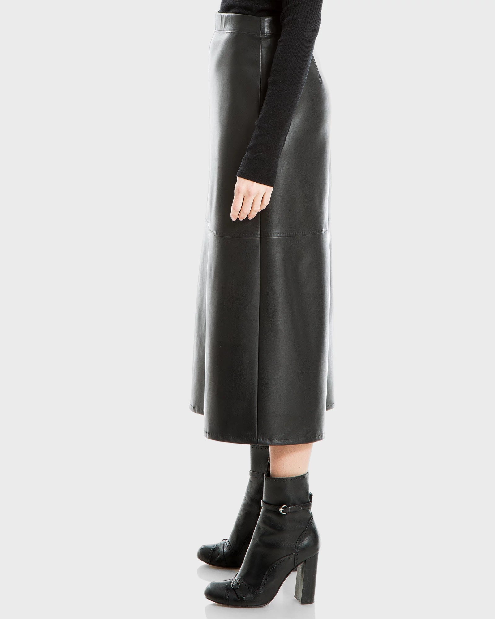 You'll be the most stylish person in the room with this sleek midi skirt. Made of smooth vegan leather, it hugs the high waist and falls to a roomy hem for a comfy work-day-to-wine-night look. Our tip? Always style it with boots.