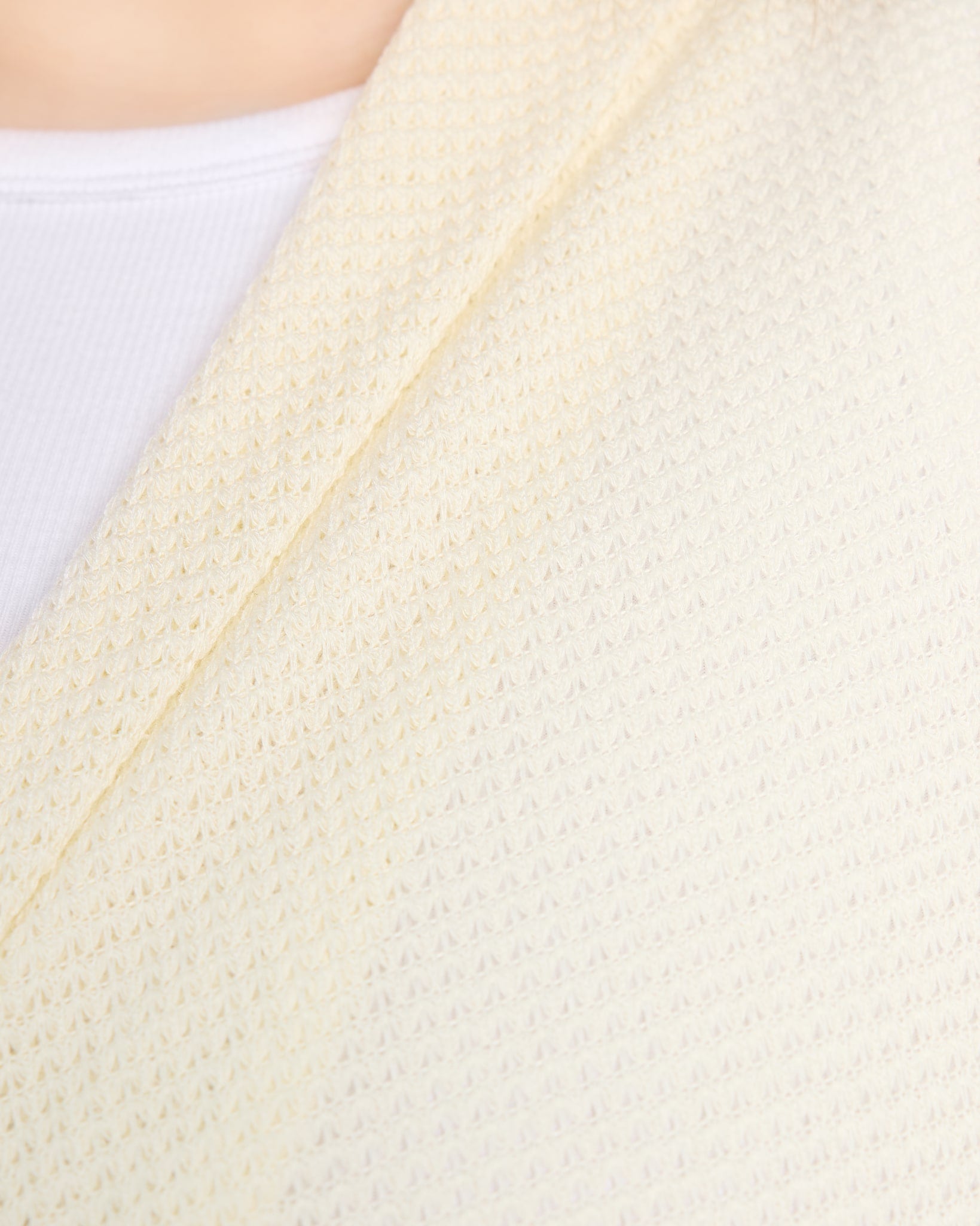 Keep warm with this luxe and lightweight cardigan! It's an open-front style with a shawl collar and cascading waterfall hem. Made of an open knit for so-soft and cozy vibes.