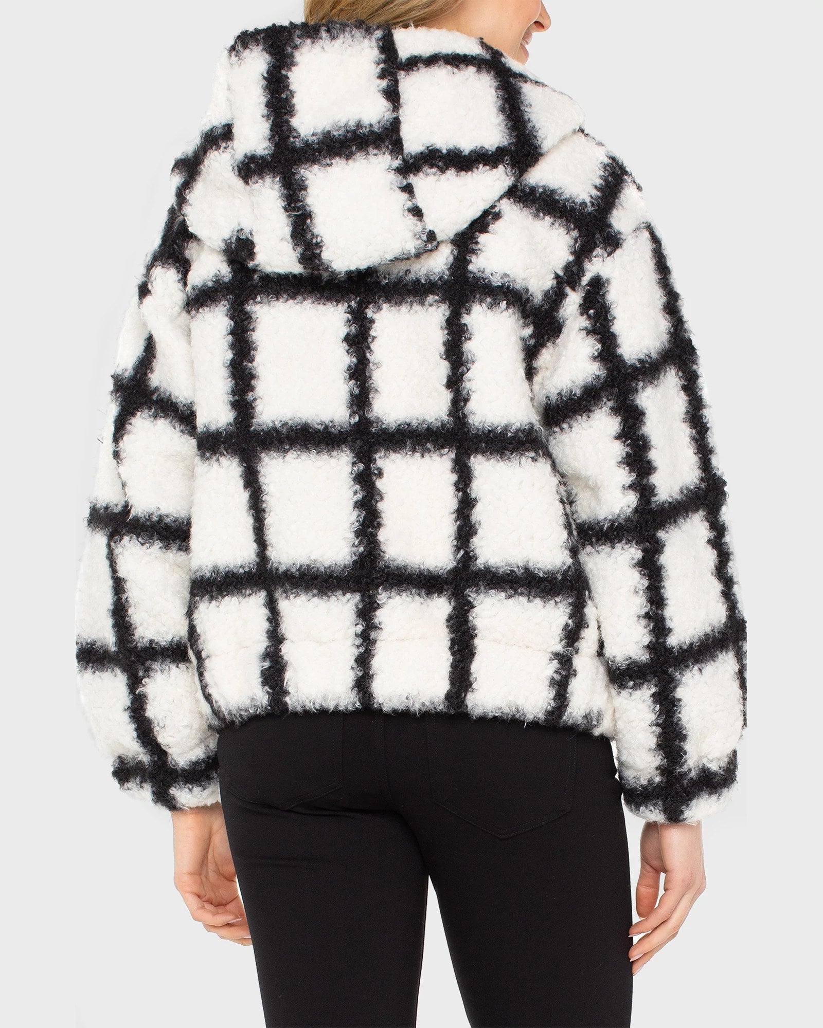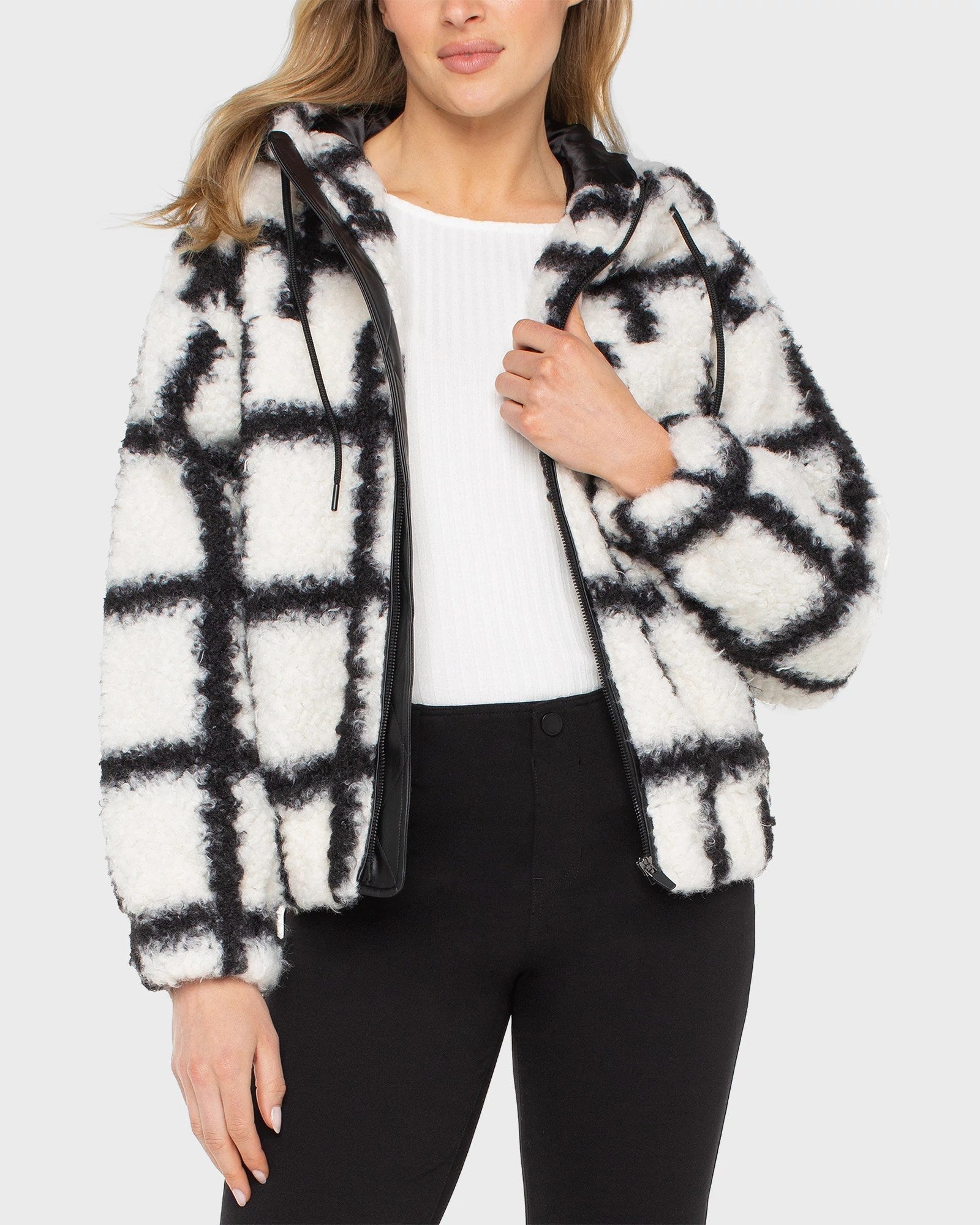 'fit checks look cooler with this hoodie as your outer layer! It's crafted from a snugggly and plush faux wool in a chunky fit. The zip-front closure makes it easy to close up during a chilly breeze.